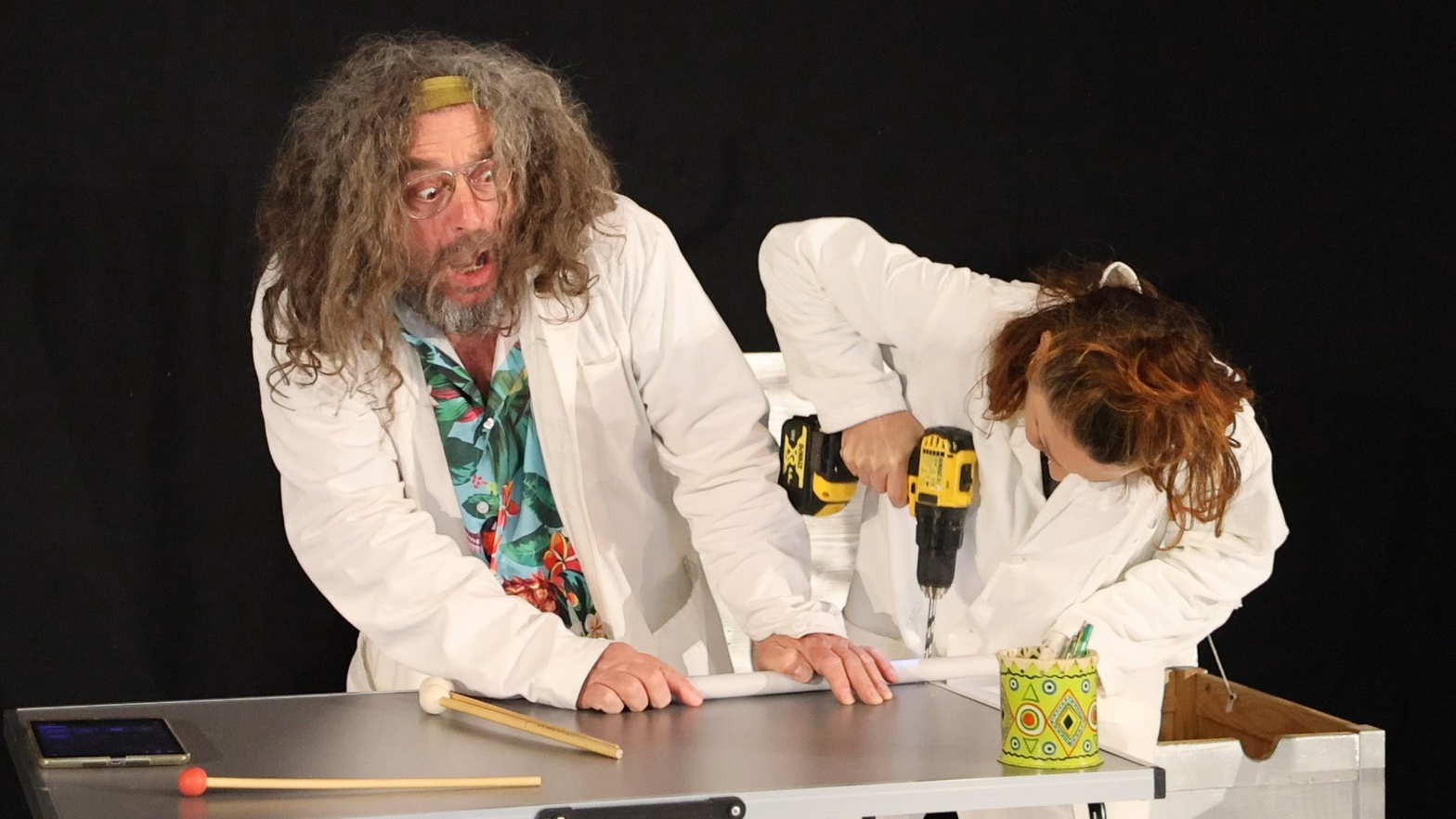 Entre démonstrations scientifiques, improvisations imprévues, expériences qui dérapent et constructions d’instruments improbables, nos deux compères vont transformer une conférence très sérieuse… en aventure clownesque et musicale !
